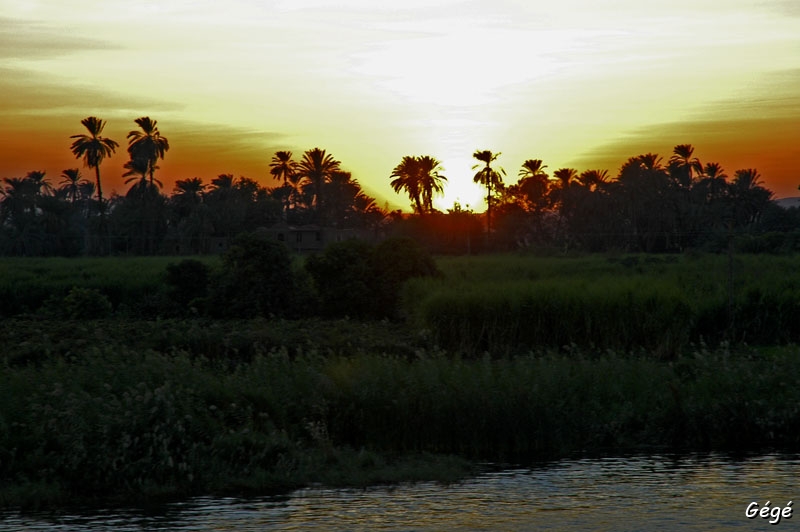 | Au Fil du Nil depuis le bateau - Coucher de soleil |